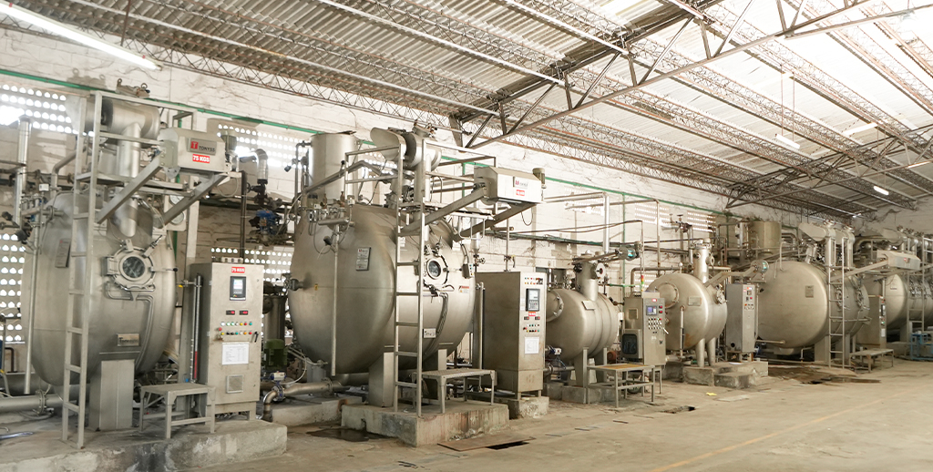 Established in 2015, Thai International is strategically situated in SIPCOT, Perundurai to cater to our dyeing needs. It houses hi-tech machinery and is designed to handle open-width and tubular fabric ranges with a production capacity of 8000 kgs per day.